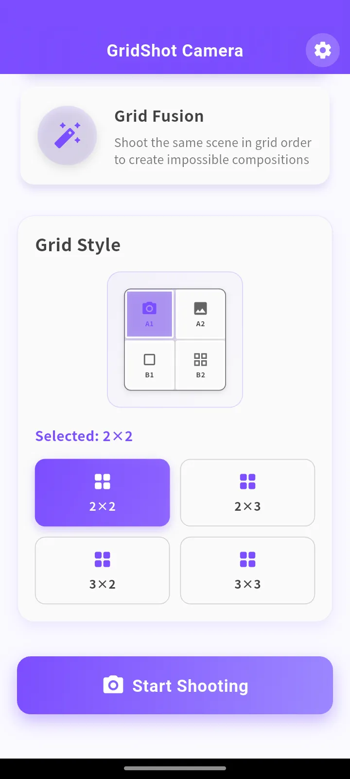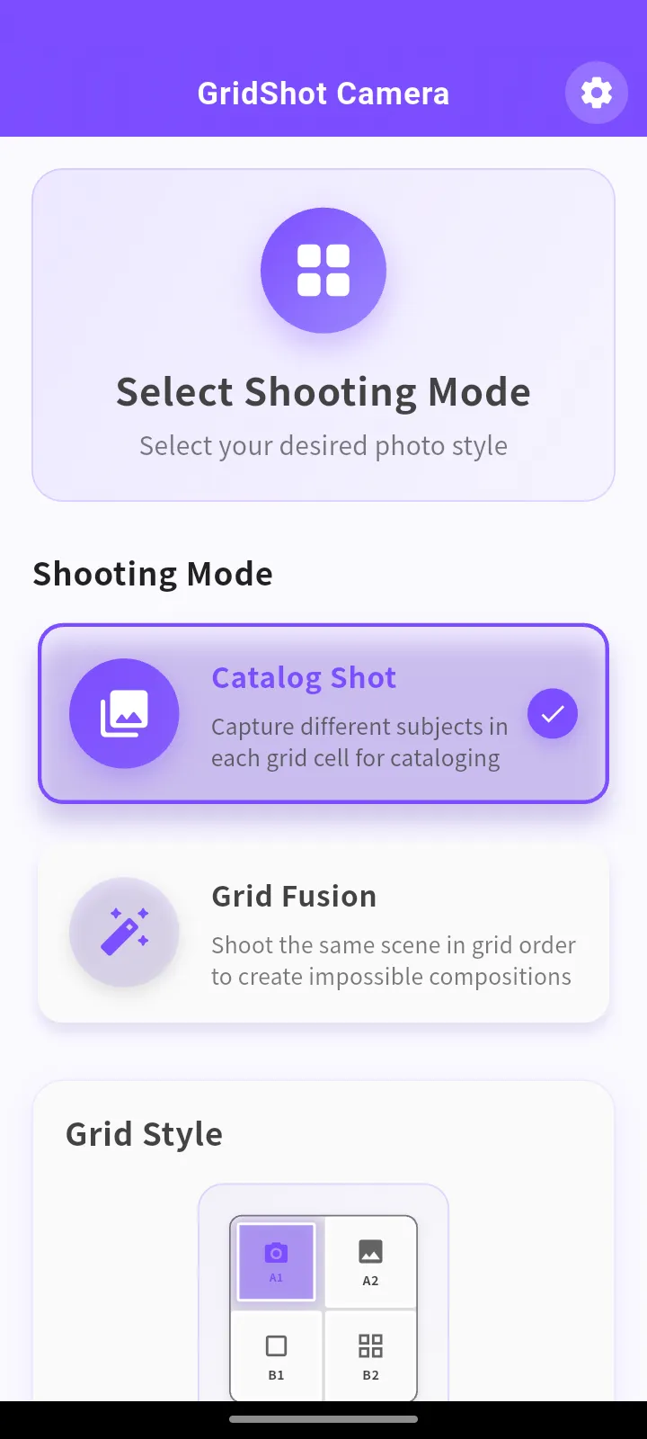 GridShot Camera is an innovative camera app that enables creative photography. With unique grid functionality, you can organize multiple subjects for shooting or create amazing composite photos by dividing the same scene.